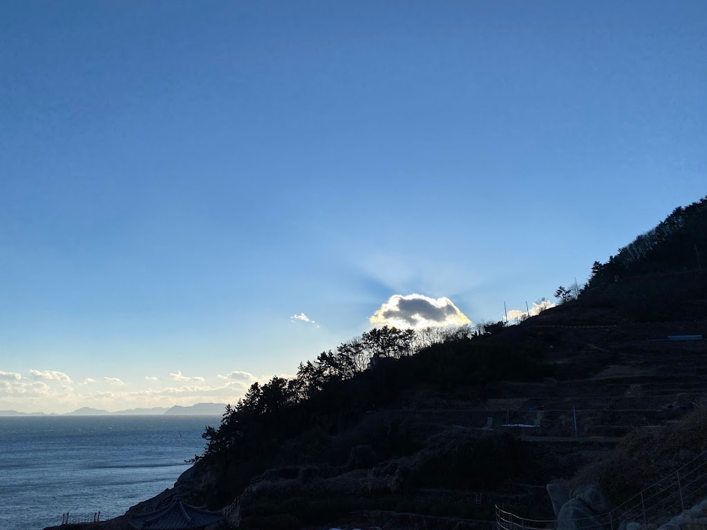 다랭이 마을에서 본 실버라이닝. 얼른 카메라를 켜 찍어봤습니다. 올해 첫 느낌이 좋네요.